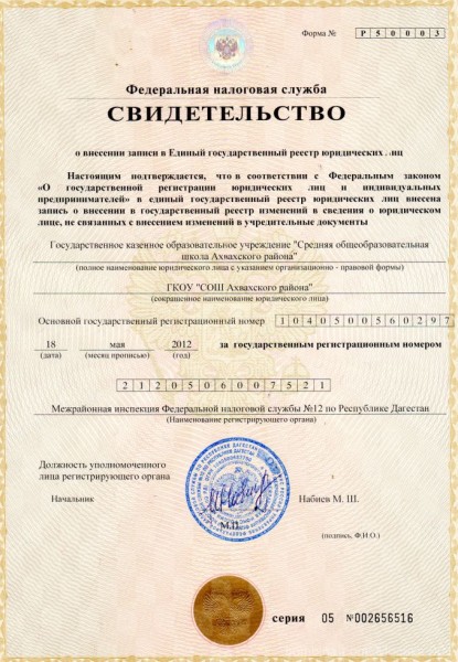 | Полное наименование образовательной организации* | Государственное казенное общеобразовательное учреждение Республики Дагестан "Средняя общеобразовательная школа Ахвахского района" |